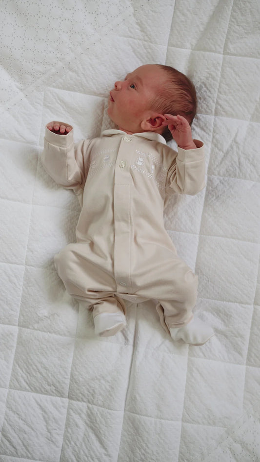 Emile et Rose - Light blue knitted, bear patterned, all in one with hat, Harry