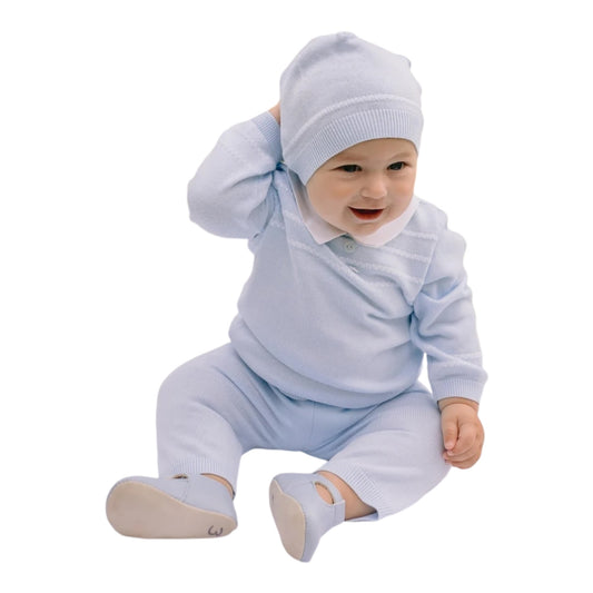 Emile et Rose - Pale blue knitted all in one with hat, Hugo