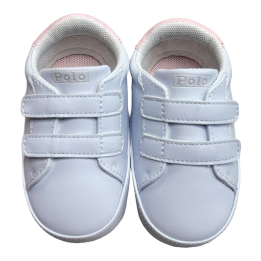 Ralph Lauren - White faux leather baby shoes, pink trim, trainer style, velcro