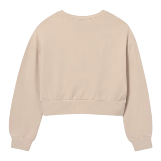 Mayoral - Cream long sleeved crop sweat top, floral design on front