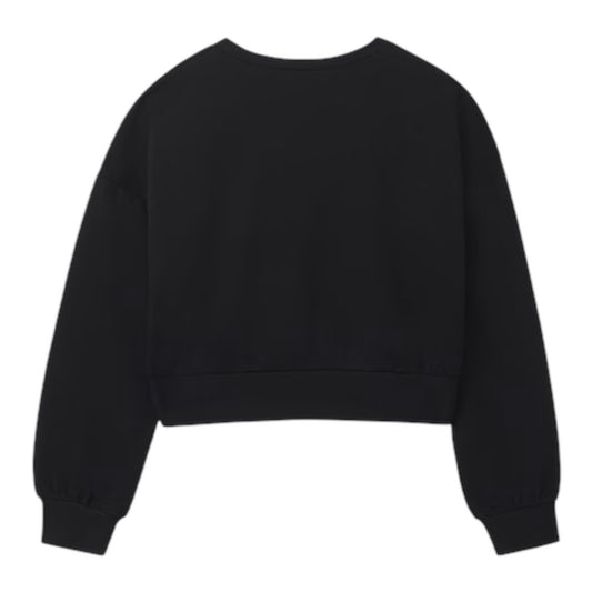 Mayoral - Black long sleeved crop sweat top, floral design on front