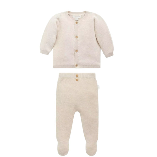purebaby - 2 piece outfit, zip all in one and matching pull on hat, bear print