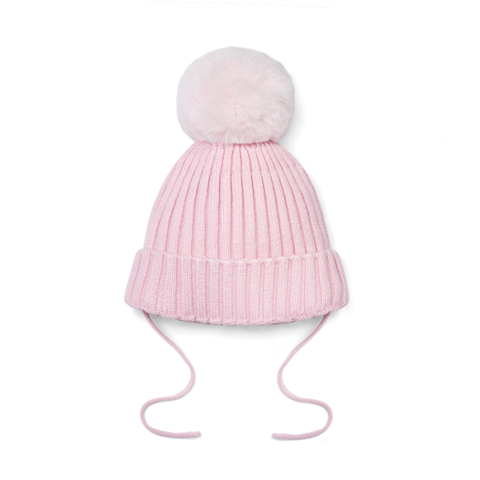 Little A - Light pink knit hat with faux fur pompom, Kamila
