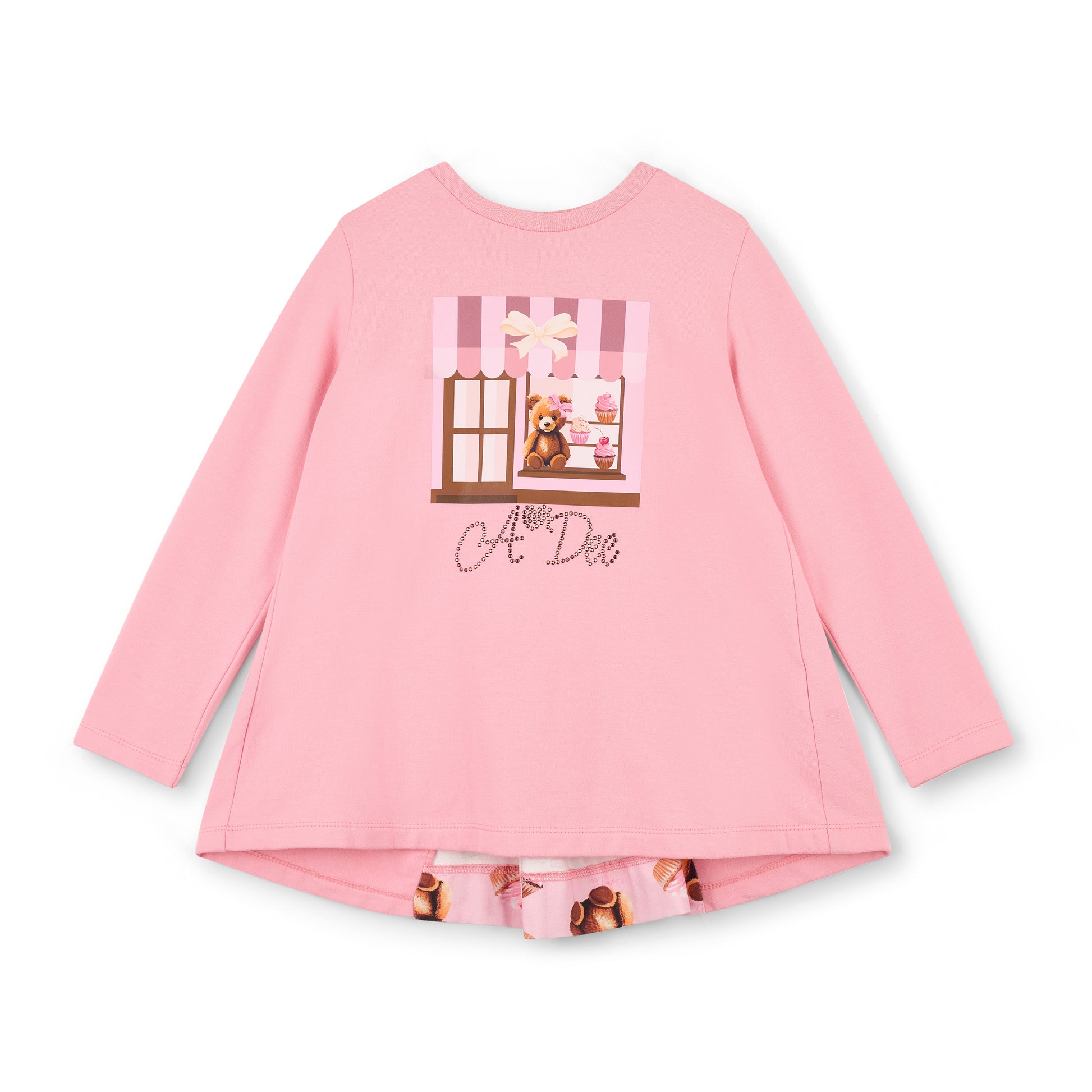 The two piece Missy legging set is perfect for brightening up the colder days! Including an A-line tunic top with a beautiful Teddy Bear Bakery artwork and printed back insert with bow detail. Paired with teddy bear print leggings.