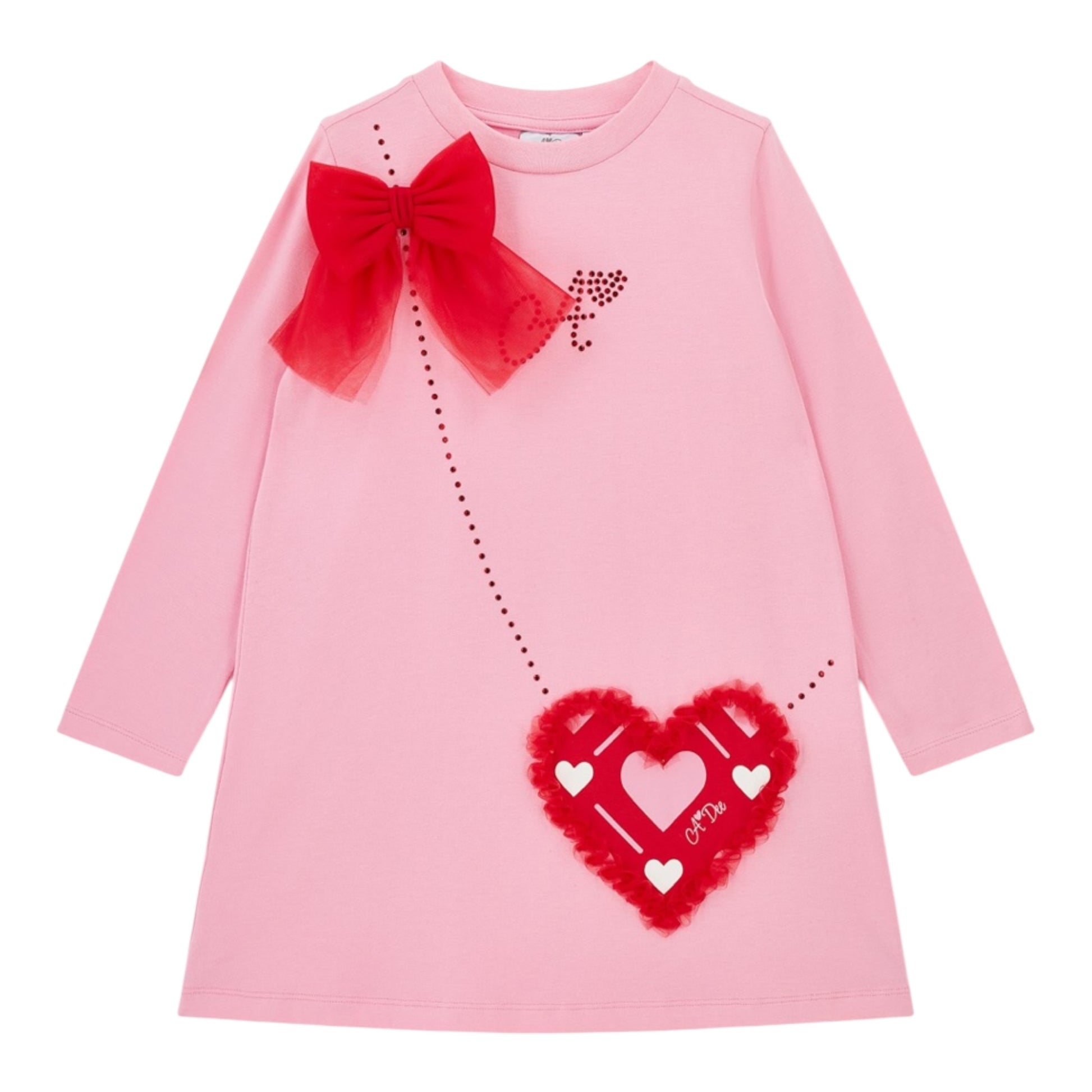 Bow and heart detail on front