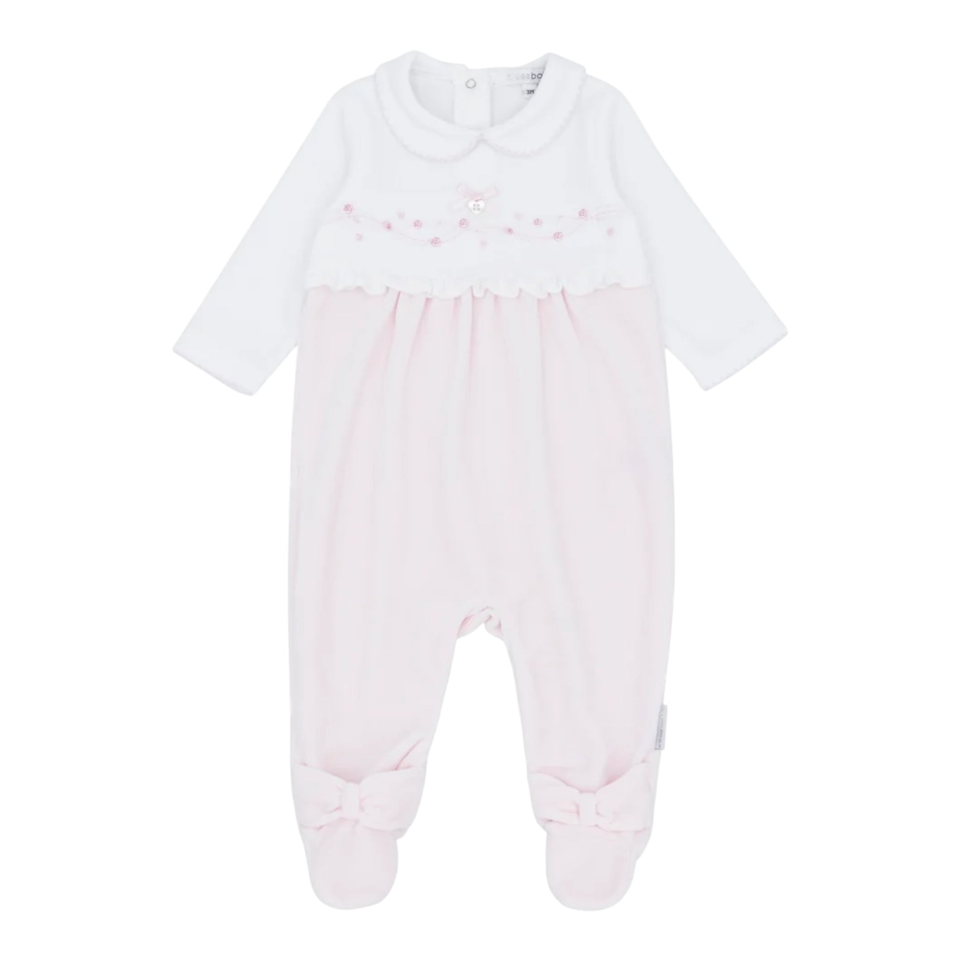 This pink and white velour all-in-one is designed to keep your baby cozy and comfortable throughout the day. Soft to the touch and easy to wear, it ensures gentle warmth without restricting movement. Perfect for delicate skin, it combines style and practicality for your little one’s everyday comfort.