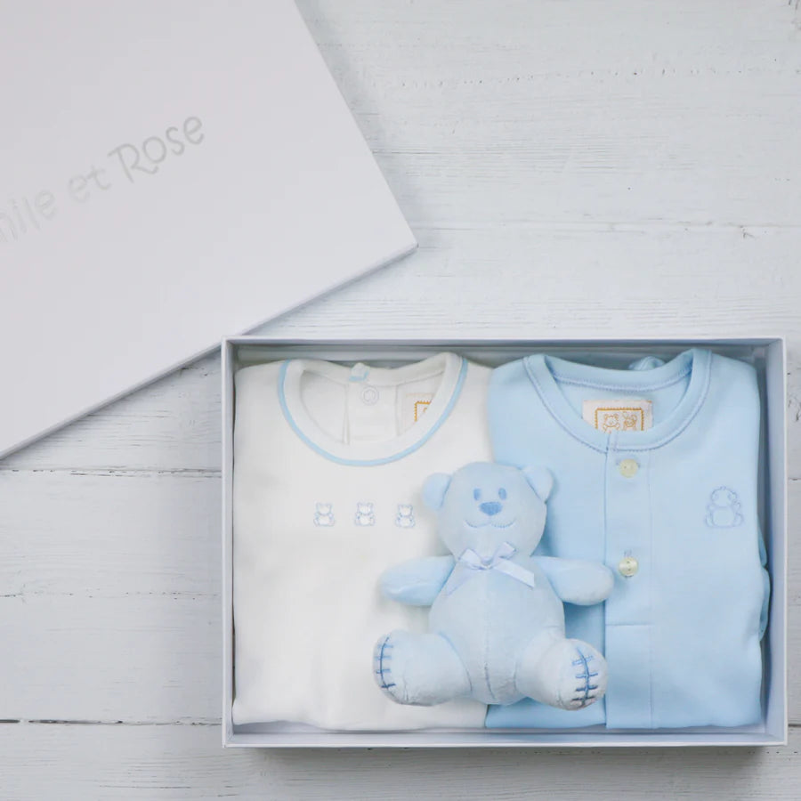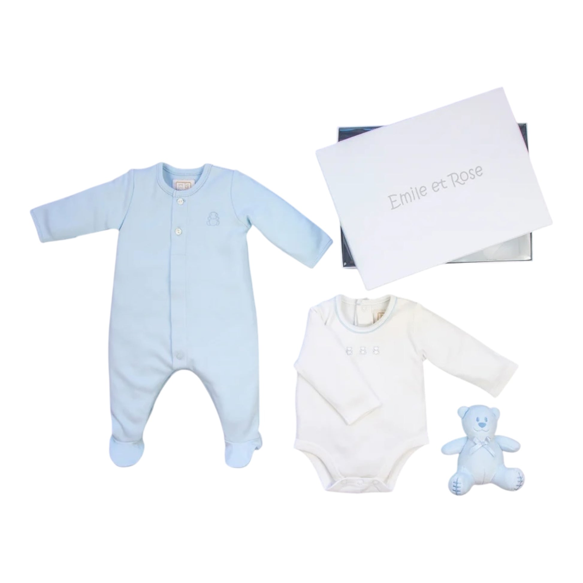 Celebrate the arrival of a little one with the Emile et Rose Gift Box, Truman, Blue. This charming set includes a soft, comfortable cotton outfit paired with an adorable matching soft toy, making it the perfect thoughtful gift for newborns. Crafted with care, it offers both style and comfort, ensuring the baby feels cozy while delighting parents with its sweet presentation. Ideal for welcoming new arrivals with warmth and love.