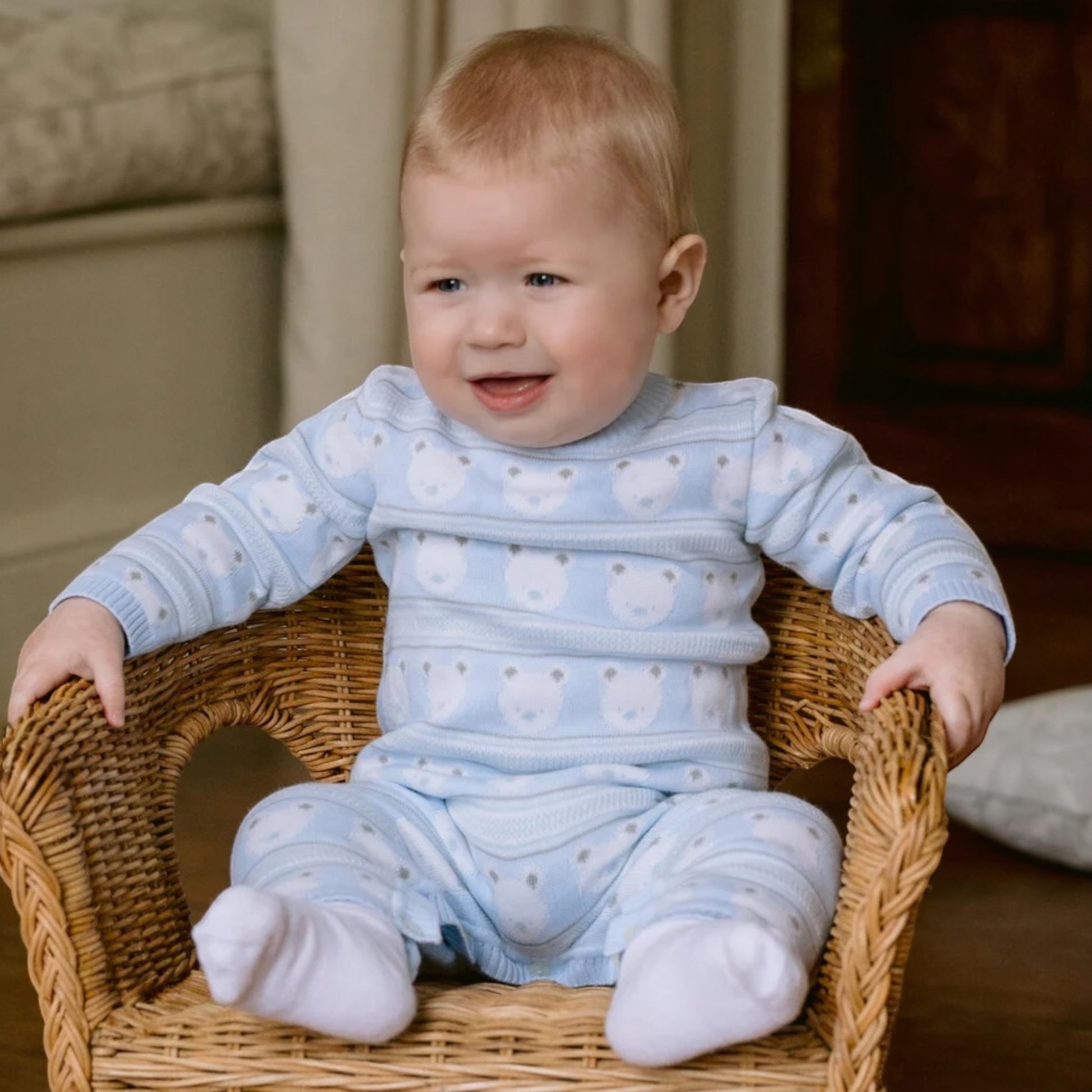 Emile et Rose - Light blue knitted, bear patterned, all in one with hat, Harry