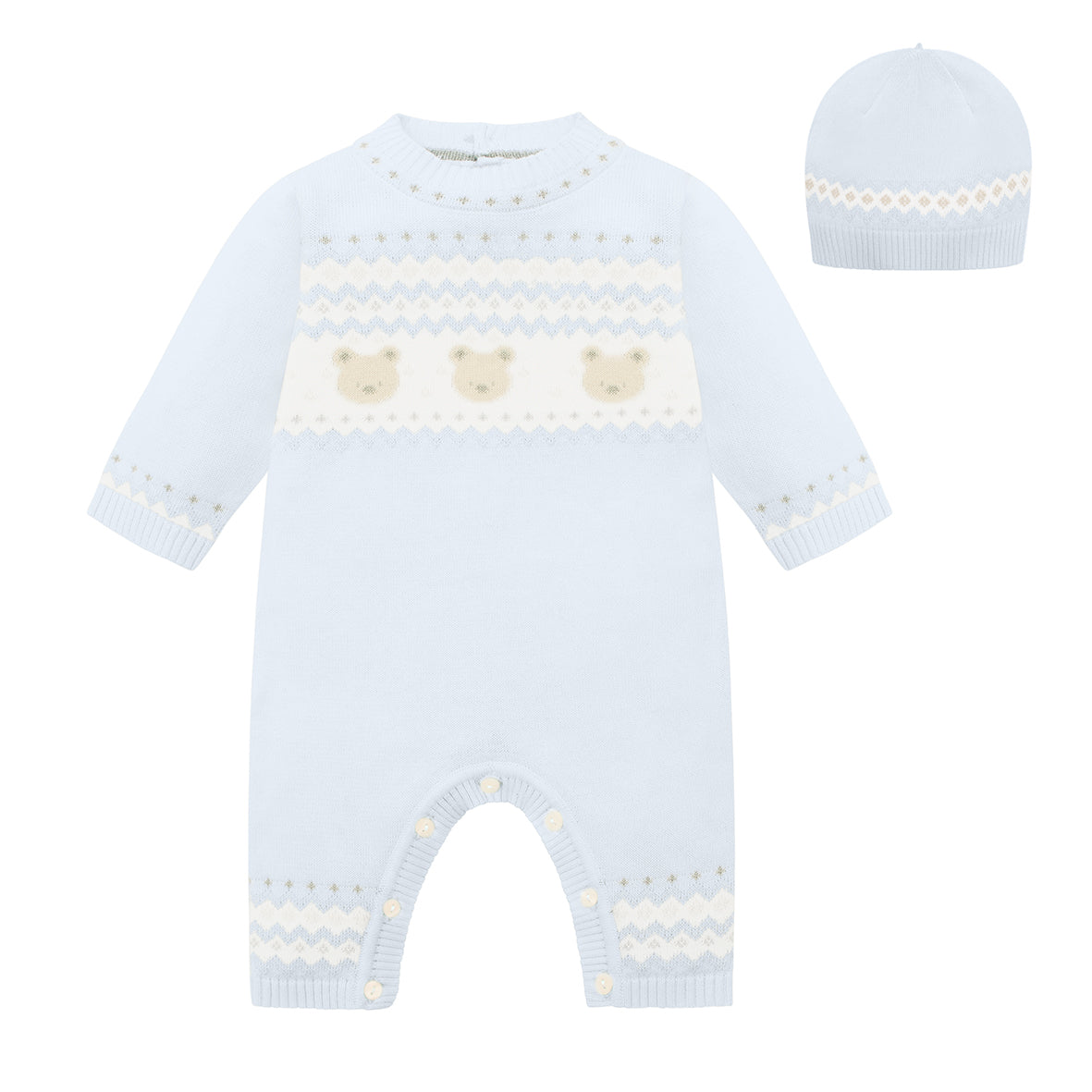 Emile et Rose - Pale blue knit, all in one and pull on hat