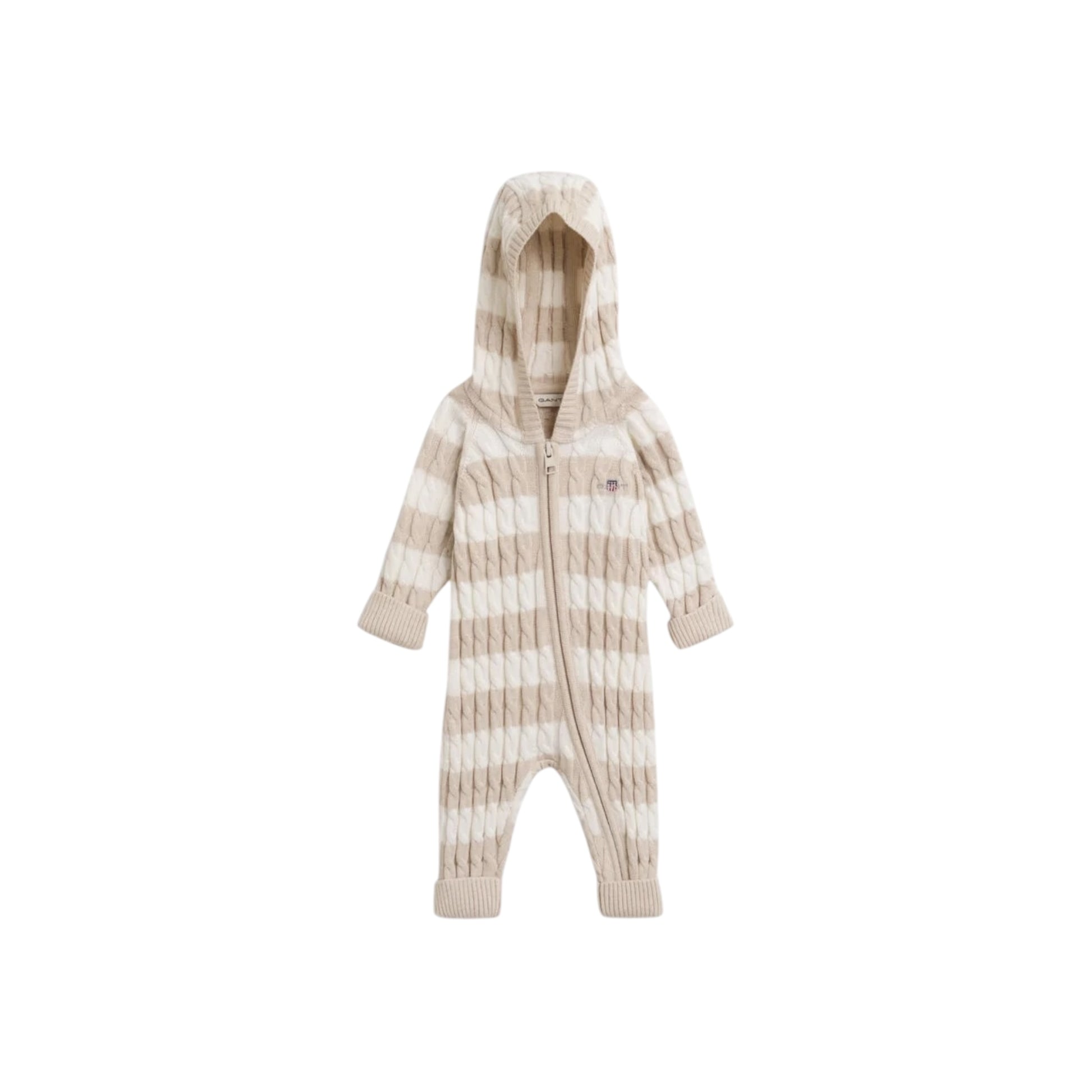 Gant - beige and cream stripe, cable knit, hooded all in one, NB-9m