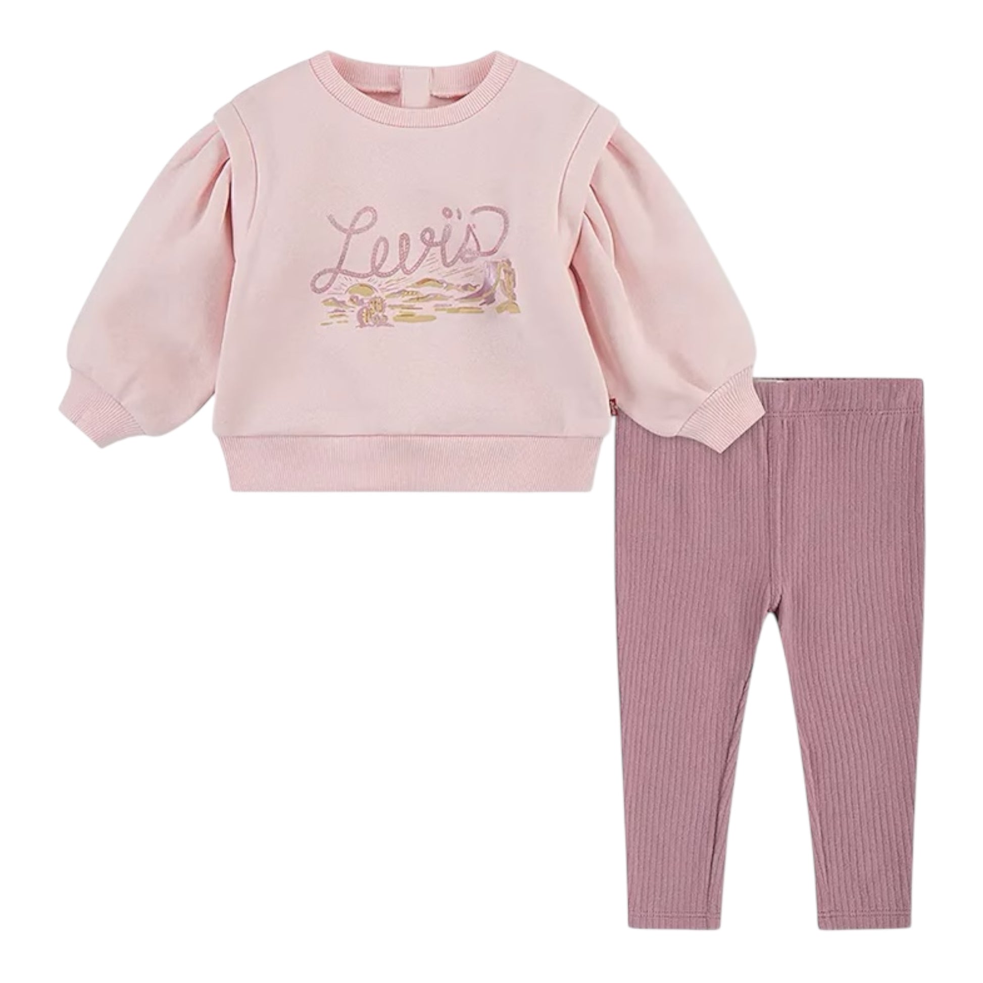Add a pop of fun to your wardrobe with Levi's playful pink two-piece set. Featuring comfy leggings and a matching top, this set is perfect for relaxed days or casual adventures. Enjoy the perfect blend of style and comfort that keeps you moving with a smile!