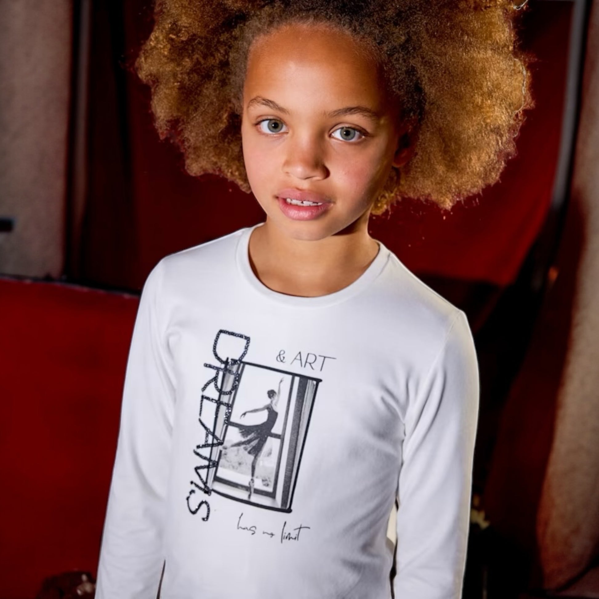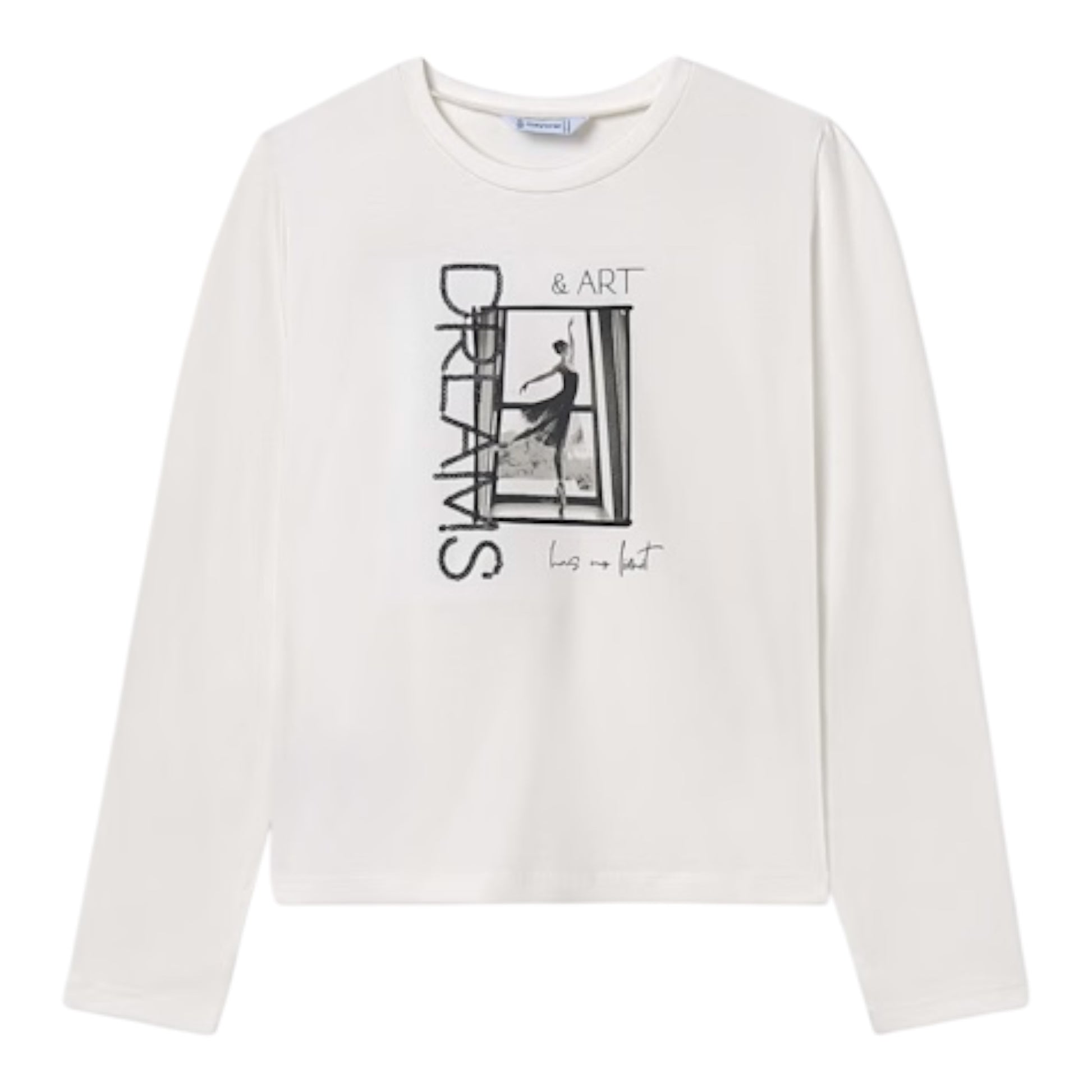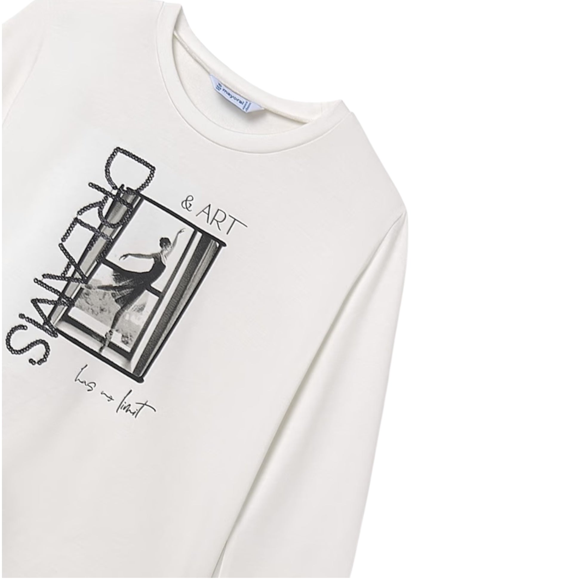 Mayoral - Cream long sleeved top, "Art has no limit"