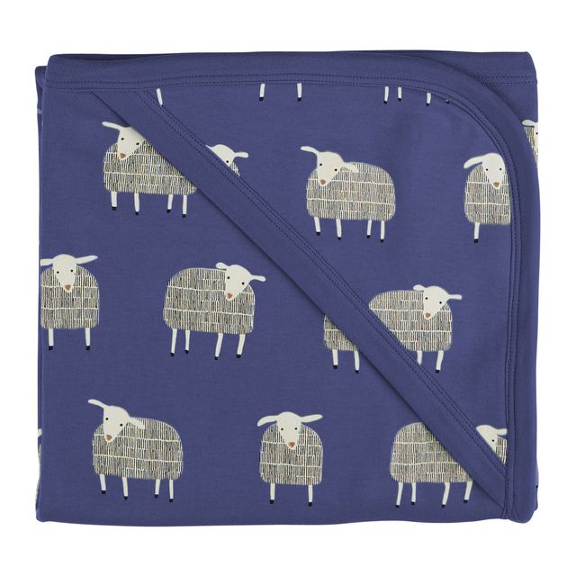 Pigeon Organics - Blue hooded blanket, all over sheep print
