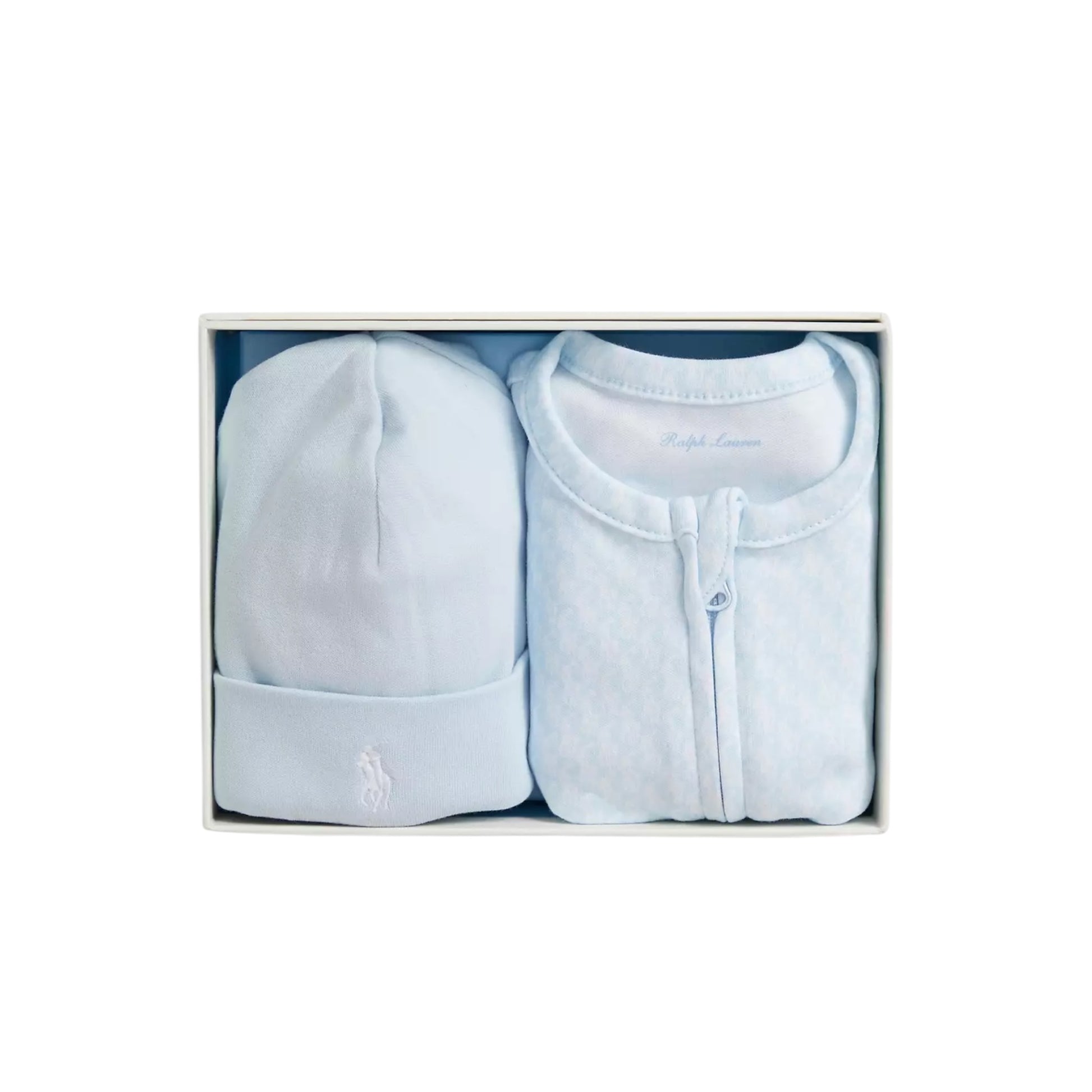 Ralph Lauren - Light blue, 2 piece baby outfit, all in one and pull on hat