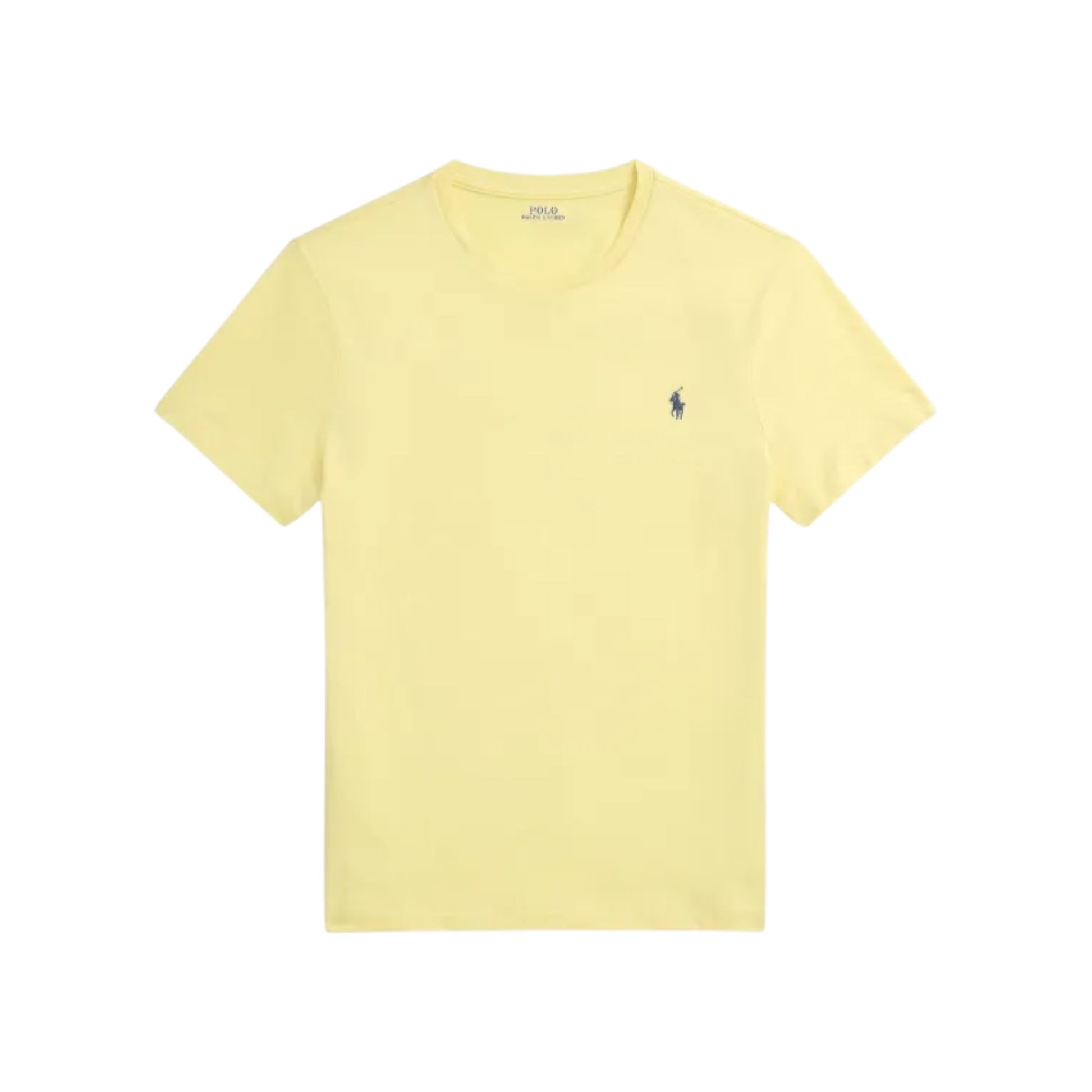soft lemon crew neck T-shirt with navy embroidered signature polo logo on left chest