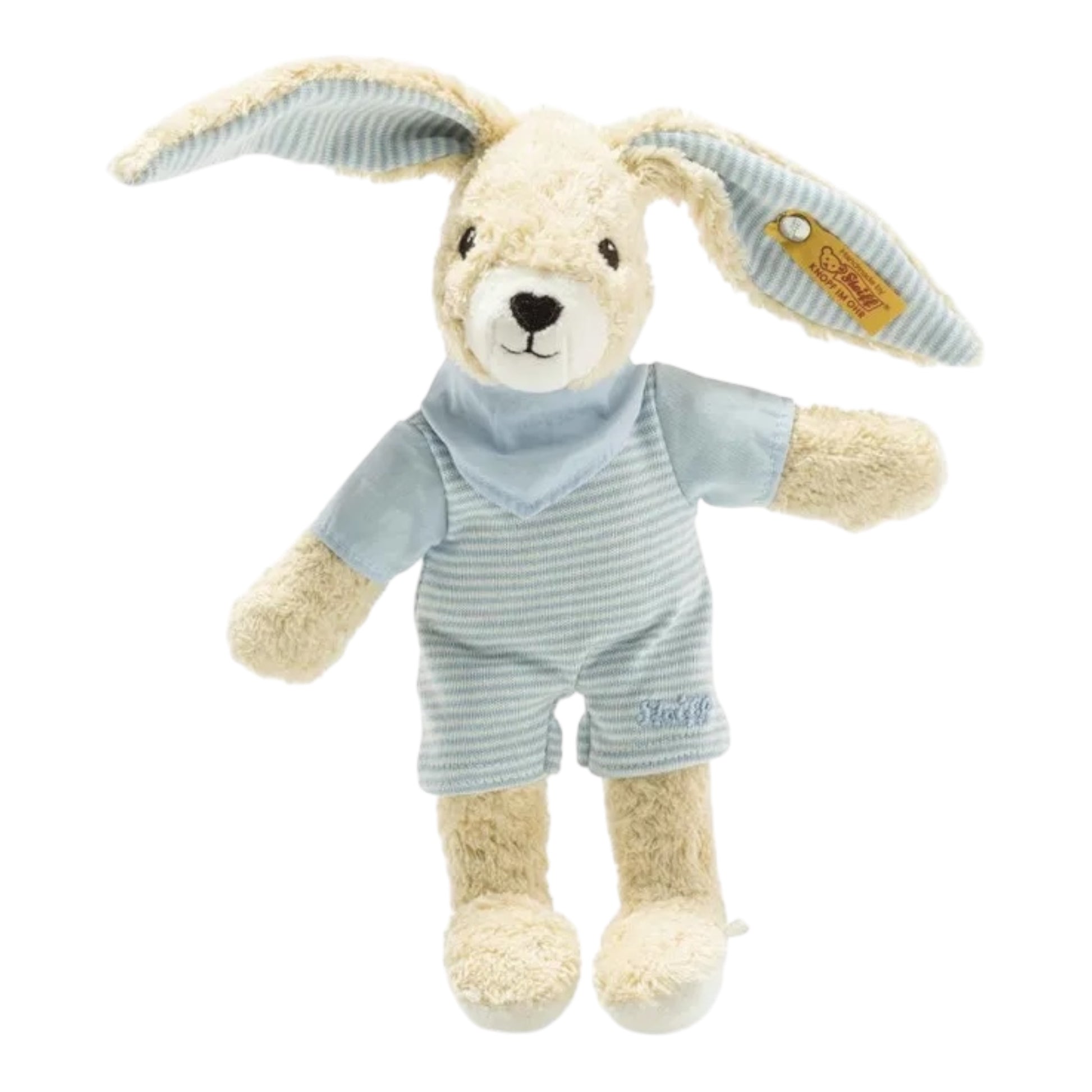 Beige Hoppel rabbit, pale blue stripe ears and matching suit
